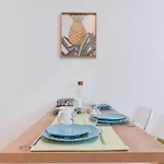 Пълнооборудваната кухня включва чай и кафе, както и хладилник, фурна и кухненска посуда, необходима за самостоятелно хранене. Апартаментът с две спални близо до улица Витошка е на кратко разстояние от автобусната спирка НДК.
